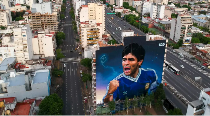 La muerte de Diego Armando Maradona propició infinidad de homenajes por toda Argentina. Su figura aparece en altares, santuarios populares y pinturas callejeras, unas muestras de idolatría que no compiten con la «inmensidad» de dos murales hiperrealistas inaugurados el pasado fin de semana.