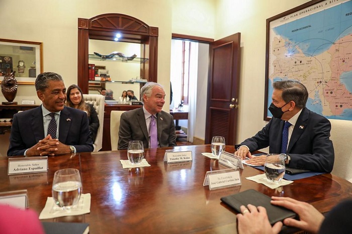 El senador Timothy Michael Kaine agradeció al presidente Cortizo Cohen por intercambiar experiencia y conocer los avances de Panamá en materia de seguridad, economía, comercio entre otros temas.