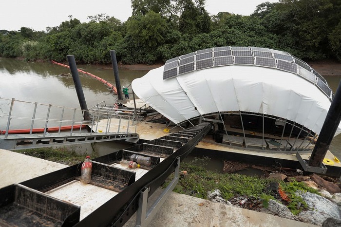 La primera rueda recolectora de basura con energía renovable de América Latina se lleva la basura que flota en uno de los ríos más importantes pero muy contaminados de Panamá antes de que se derrame en el Océano Pacífico, gracias a una iniciativa de un ambientalista local.