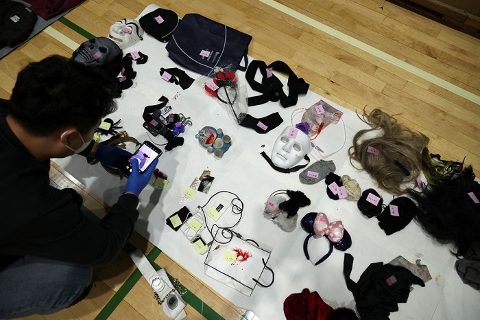 El martes, su piso se colocó con 256 pares de zapatos, 258 prendas de vestir, 124 bolsos y 156 artículos electrónicos y otras pertenencias personales, incluidos llaveros de animales de peluche y máscaras festivas de Halloween.